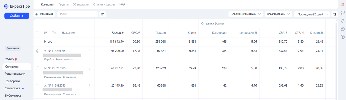 Настроили рекламные компании в Яндекс.Директ
