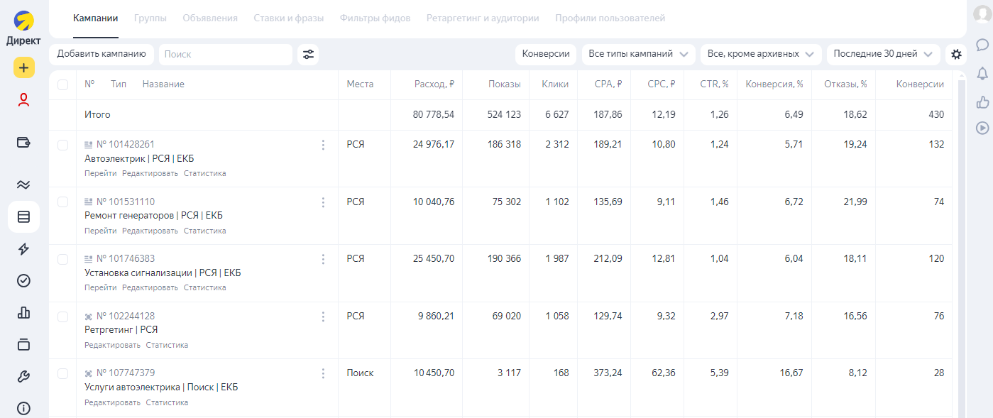 Кейс: Реклама Услуг автоэлектрики, ремонта генераторов и установки сигнализации в Екатеринбурге. 355 заявок до 200 рублей благодаря связки Яндекс.Директ + Сайт и Таргетированной рекламы ВК